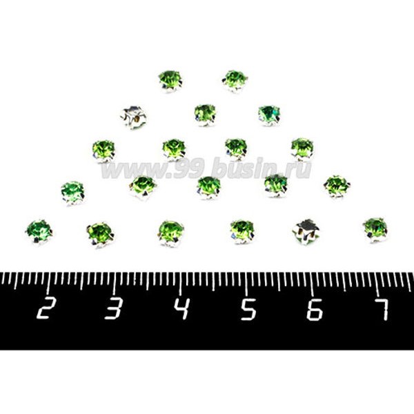 Шатоны стеклянные 4 мм цвет светло-зелёный/оправа серебро Китай 30 штук/упаковка