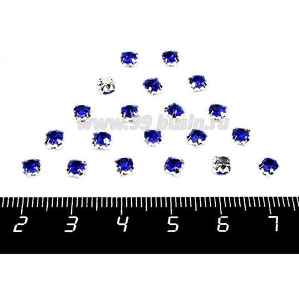 Шатоны стеклянные 4 мм цвет ярко синий/оправа серебро Китай 30 штук/упаковка