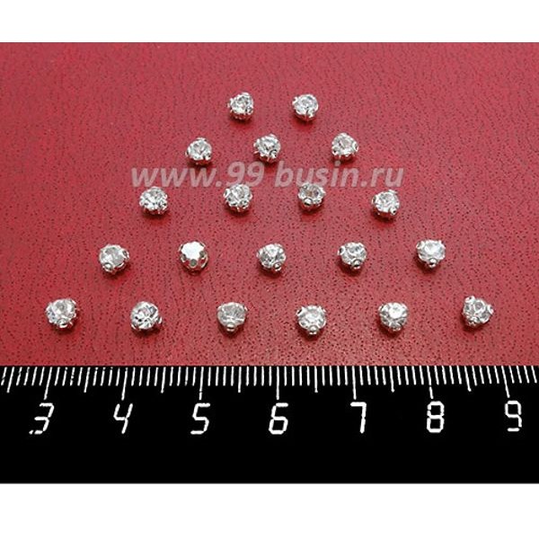 Шатоны стеклянные 4 мм цвет бесцветный/оправа серебро, Китай 30 штук/упаковка