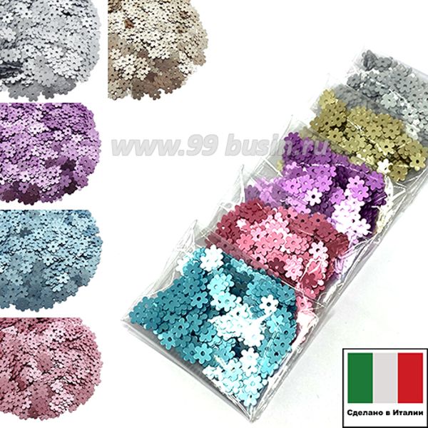 Набор пайеток Цветочки Сатин Италия 5 мм 916W,806W,306W,506W,606W 5 упаковок/2 грамма