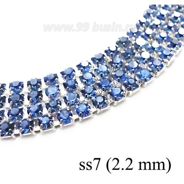 Стразовая цепочка 2.2 мм (ss7) цвет сапфир/серебристый Тайвань 0,5 метра