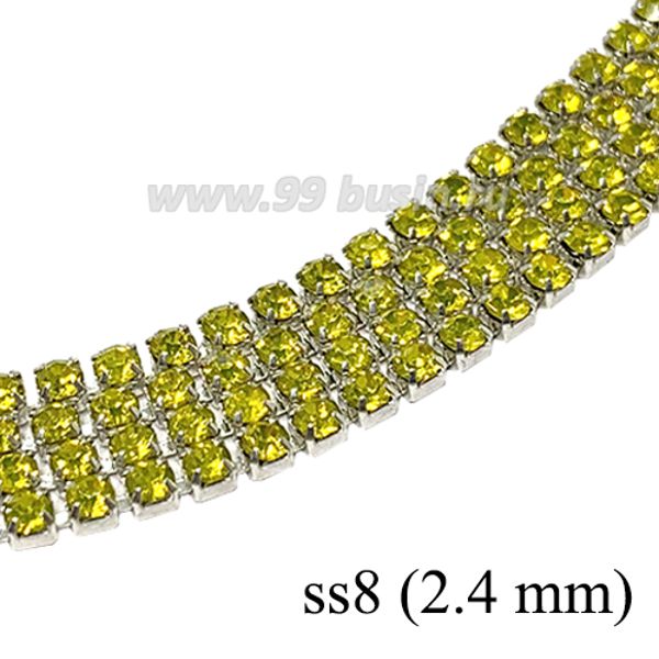 Стразовая цепочка 2,4 мм (ss8) цвет ананасовый желтый/серебристый Тайвань 0,5 метра