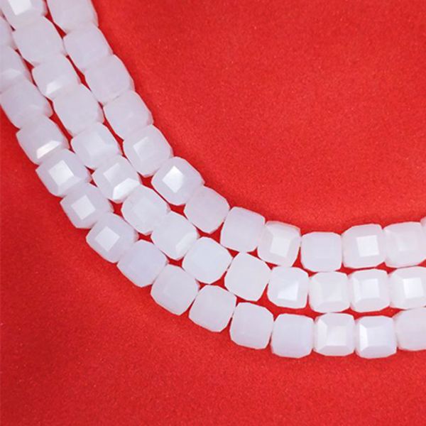 Бусины хрустальные Кубик 8 мм Белый опал около 30 см нить