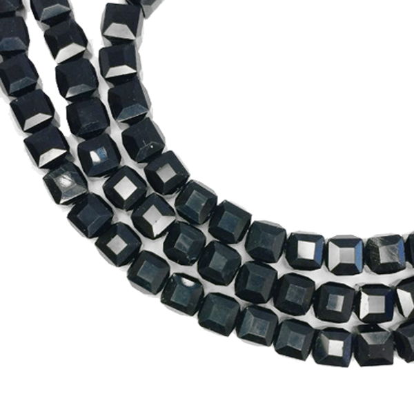 Бусины хрустальные Кубик 8 мм Черный около 30 см нить