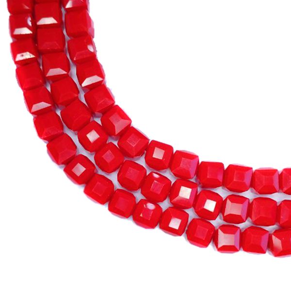 Бусины хрустальные Кубик 6 мм Красный непрозрачный около 25 см нить