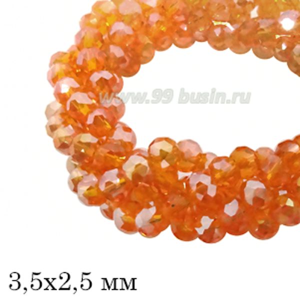 Бусины хрустальные Рондель 3*2 мм цвет оранжевый/перламутр, около 40 см/нить