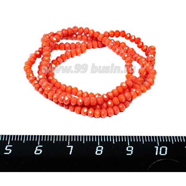 Бусины хрустальные Рондель 3*2 мм коралловый 30 см нить