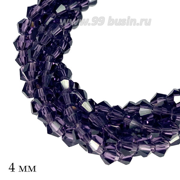 Бусина хрустальная биконус 4 мм прозрачный фиолетовый нить ок. 38 см/120 штук