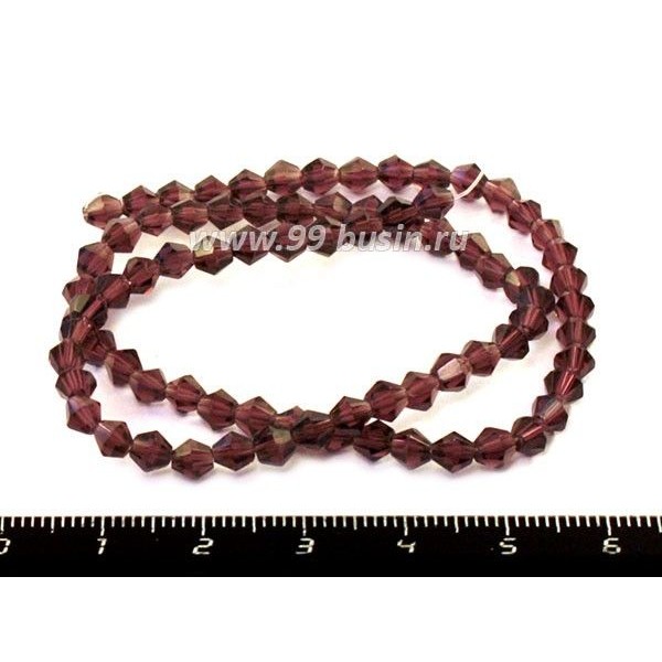 Бусина хрустальная биконус 4 мм темный аметист нить ок. 32 см