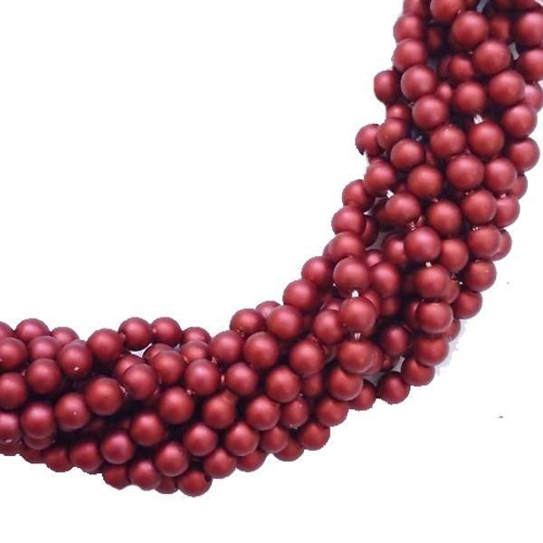 Бусина стеклянная жемчуг (иск.) на нити Премиум (аналог чешского) матовый, бордо 4 мм 40 см/нить