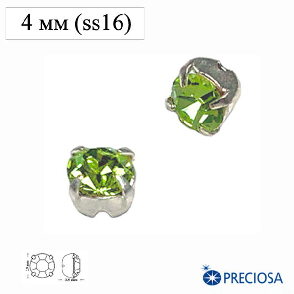 Шатоны PRECIOSA MAXIMA ss16 (4 мм), цвет Olivine/оправа серебро, 12 штук/упаковка, Чехия