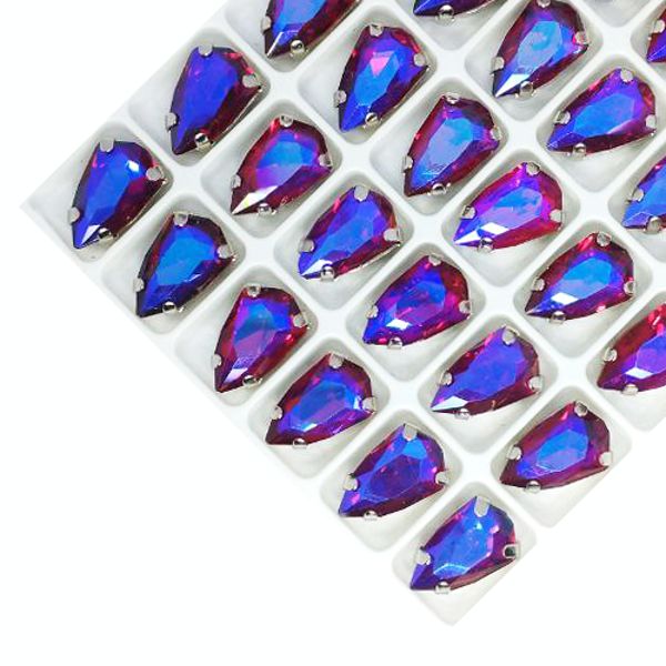 Стразы стеклянные пришивные в цапах Капля 13*8 мм ..