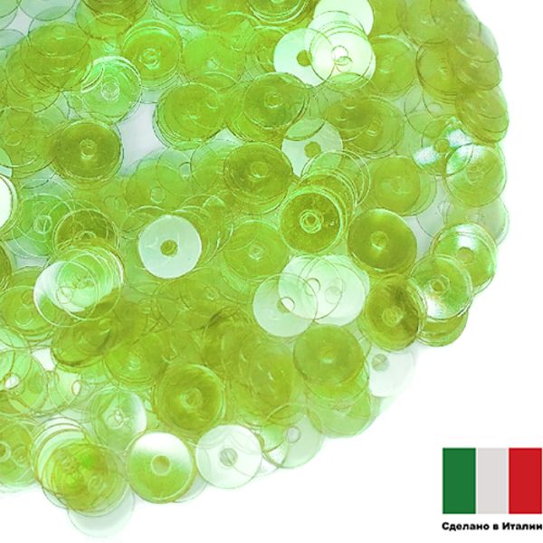 Пайетки 6 мм прозр. светлый зеленый радужный 3гр Италия