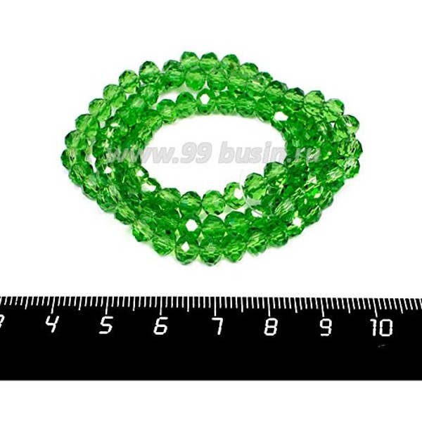 Бусина стеклянная на нити Мелкая грань 6*4 мм, цвет ярко-зеленый около 100 штук/нить