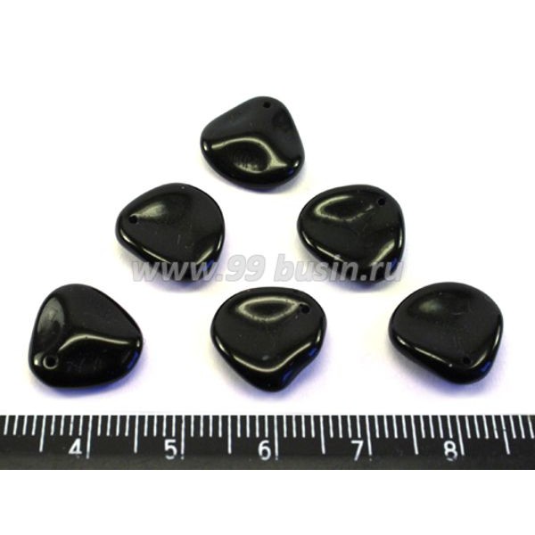 Бусина стеклянная Лепесток выпуклый 13*14*4 мм черный непрозрачный 6 шт/упак ЧЕХИЯ