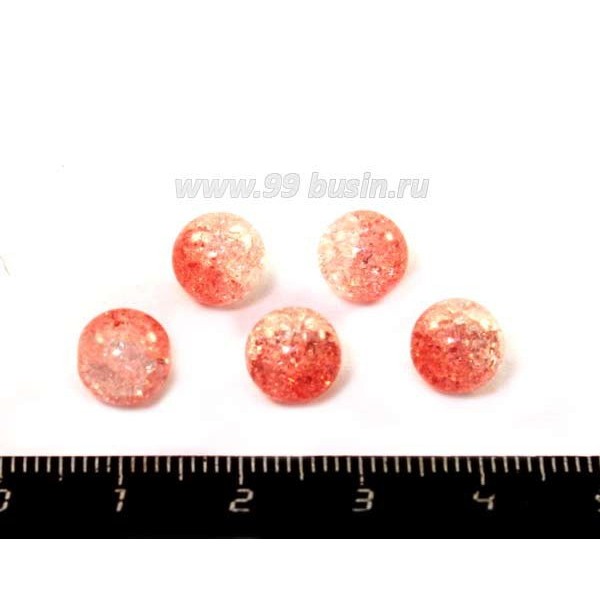 Бусина "битое стекло" круглая 8 мм, цвет персиковый/прозрачный 5 шт/уп