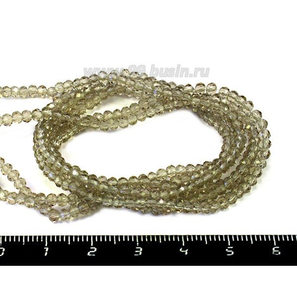 Бусины хрустальные на нити форма Рондель 3*2 мм цвет серый 45 см нить /200 бусин