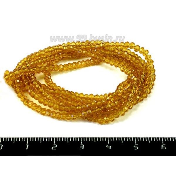 Бусины хрустальные на нити форма Рондель 3*2 мм цвет медовая 45 см нить /200 бусин