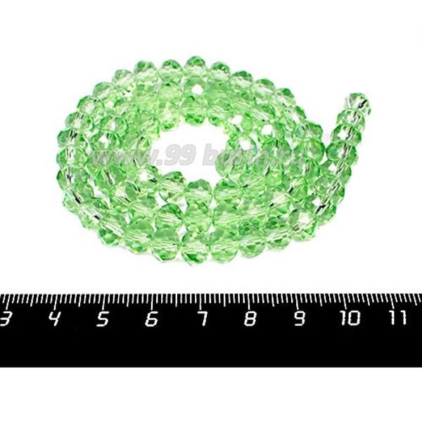 Бусина стеклянная на нитке мелкая грань 8*6 мм цвет светло-зеленый около 40 см/нить