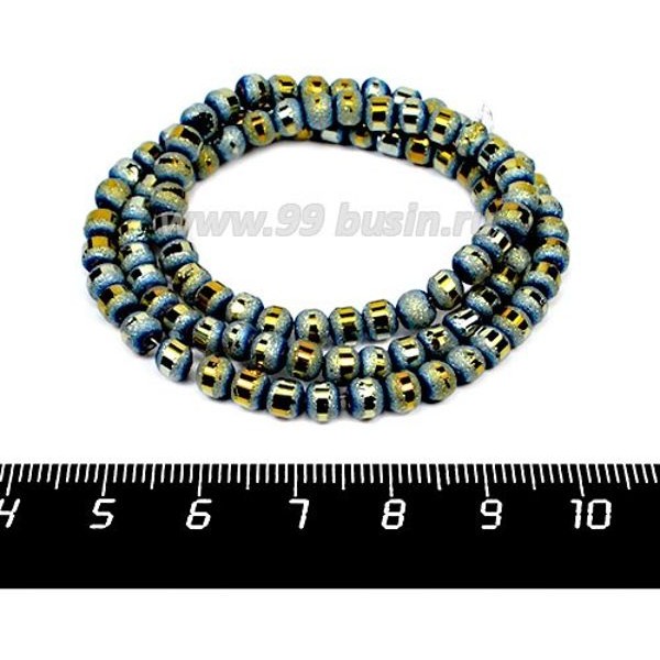 Бусины стеклянные на нити Метеориты 5*4 мм, шероховатые/гладкая полоска, цвет зеленовато-голубой, около 40 см нить/100 бусин