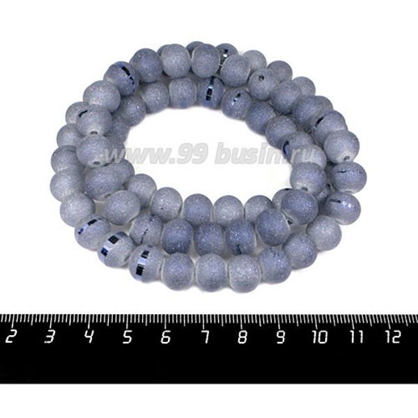 • Бусины стеклянные на нити Метеориты 11*9 мм, шероховатые/гладкая полоска, цвет синяя дымка, около 62 см нить/70 бусин
