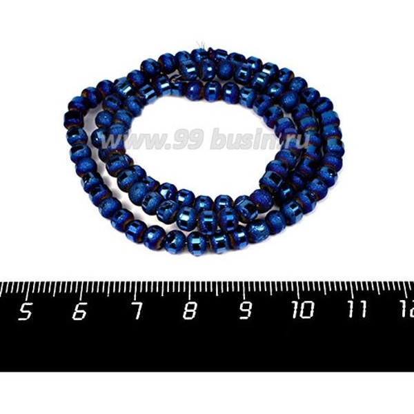 Бусины стеклянные на нити Метеориты 5*4 мм, шероховатые/гладкая полоска, цвет синий электрик, около 40 см нить/100 бусин