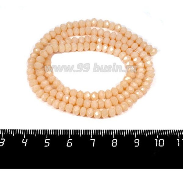 Бусины хрустальные на нити форма Рондель 4,5*3 мм цвет карамельный полупрозрачный, 48 см нить/около 140 бусин
