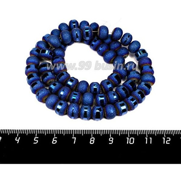 Бусины стеклянные на нити Метеориты 9*7 мм, шероховатые/гладкая полоска, цвет синий электрик, около 48 см нить/70 бусин