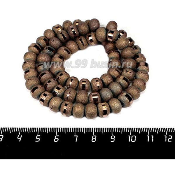 Бусины стеклянные на нити Метеориты 9*7 мм, шероховатые/гладкая полоска, цвет шоколад, около 48 см нить/70 бусин