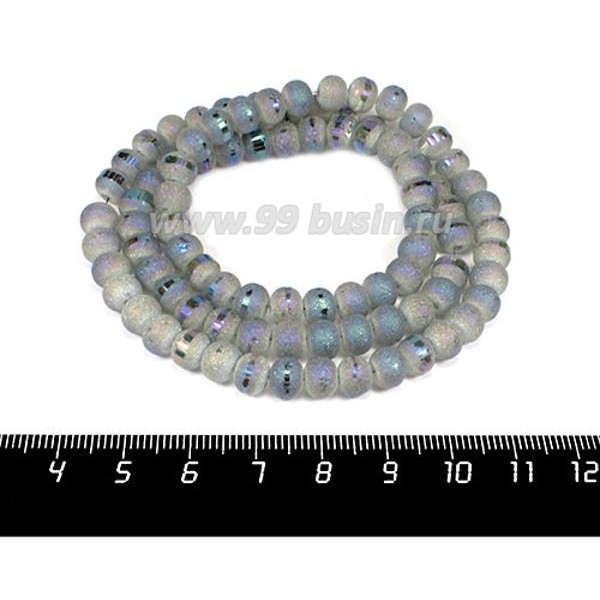 Бусины стеклянные на нити Метеориты 7*5 мм, шероховатые/гладкая полоска, цвет туманное утро, около 54 см нить/100 бусин
