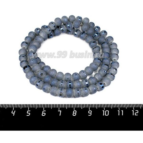 • Бусины стеклянные на нити Метеориты 7*5 мм, шероховатые/гладкая полоска, цвет синяя дымка, около 54 см нить/100 бусин