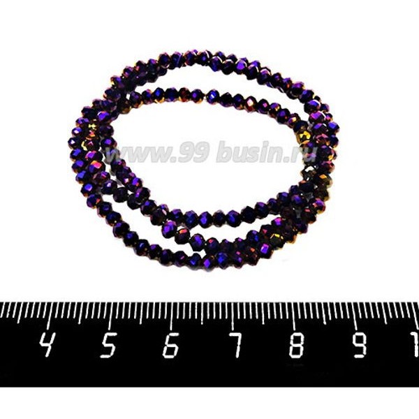 Бусины хрустальные на нити форма Рондель 3,5*2,5 мм цвет фиолетовый электрик, 37 см нить/около 135 бусин