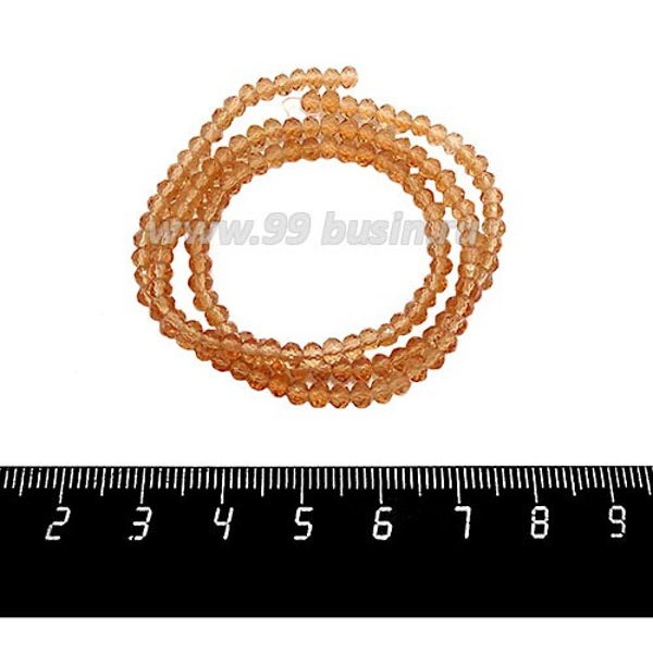 Бусины хрустальные на нити форма Рондель 3,5*2,5 мм цвет медовый, около 37 см нить/140 бусин