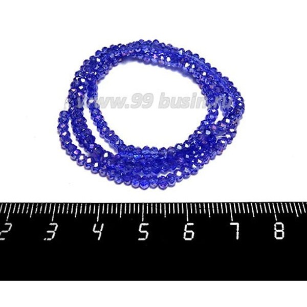 Бусины хрустальные на нити форма Рондель 3*2 мм, цвет синий/радужный 43 см нить/около 200 бусин