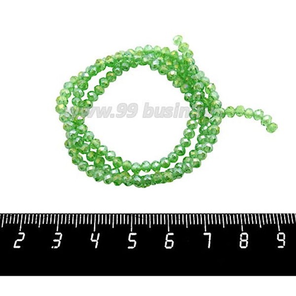 Бусины хрустальные на нити форма Рондель 3,5*2,5 мм зеленый радужный, около 36 см нить /145 бусин