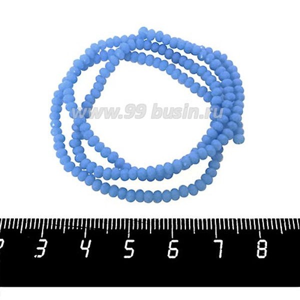 Бусины хрустальные на нити форма Рондель 3*2 мм, цвет сине-голубой 40 см нить/около 180 бусин
