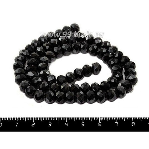 Бусина стеклянная на нитке мелкая грань 8*6 мм черный около 40 см/нить