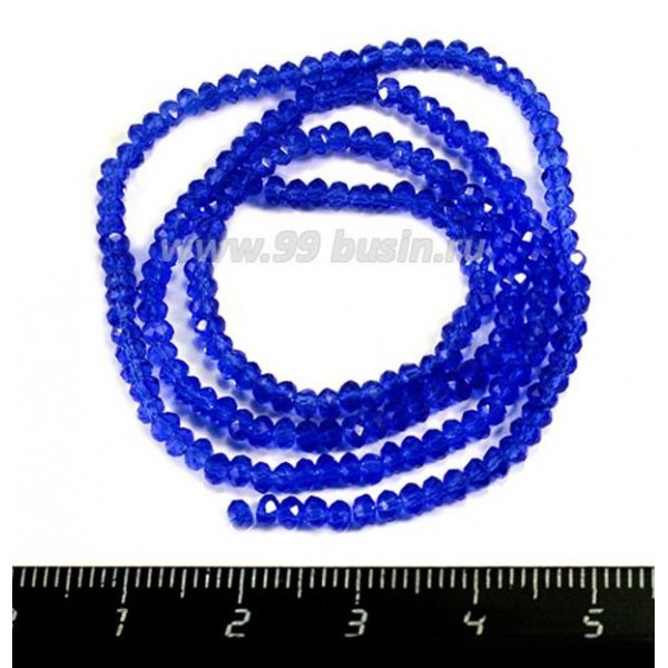 Бусины хрустальные на нити форма Рондель 3*2 мм тёмно-синий прозрачный около 42 см нить /200 бусин