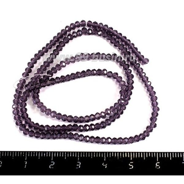Бусины хрустальные на нити форма Рондель 3*2 мм цвет фиолетовый прозрачный 40 см нить /200 бусин