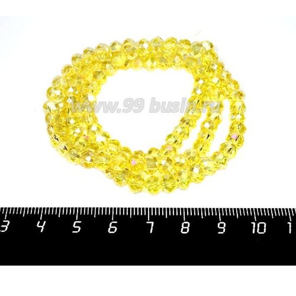 Бусина хрустальная на нити 6*4 мм, цвет желтый/перламутр около 100 штук/нить