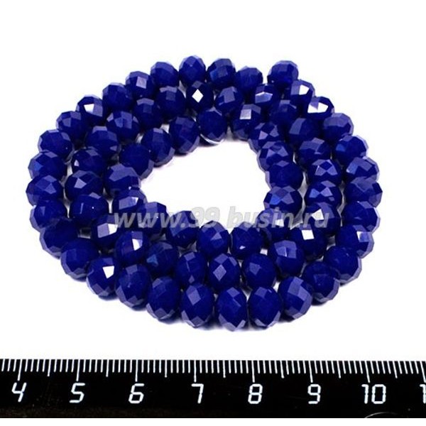 Бусина стеклянная на нитке мелкая грань 8*6 мм цвет непрозрачный кобальт около 40 см/нить