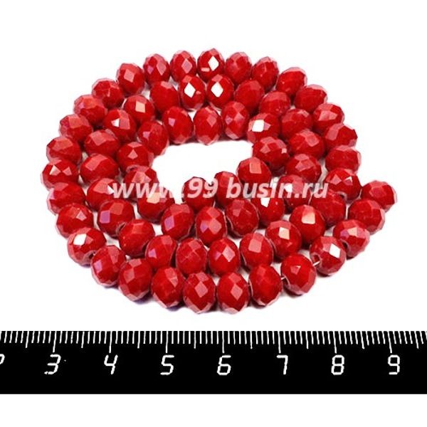 Бусина стеклянная на нитке мелкая грань 8*6 мм цвет непрозрачный темно-красный около 40 см/нить