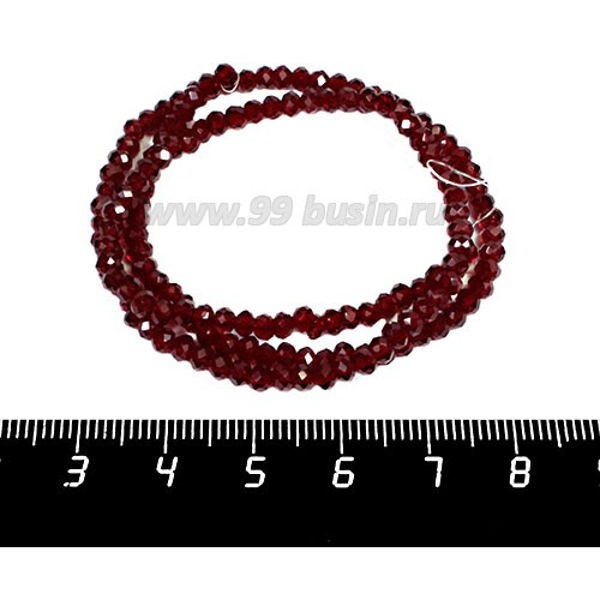 Бусины хрустальные на нити форма Рондель 3,5*2,5 мм цвет винный, 39 см нить/около 145 бусин