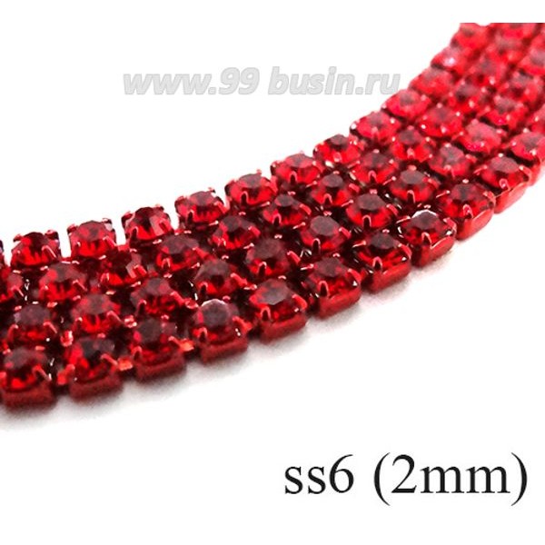 Стразовая цепочка 2 мм (ss6) цвет красный (металл под цвет страз) Тайвань 0,5 метра