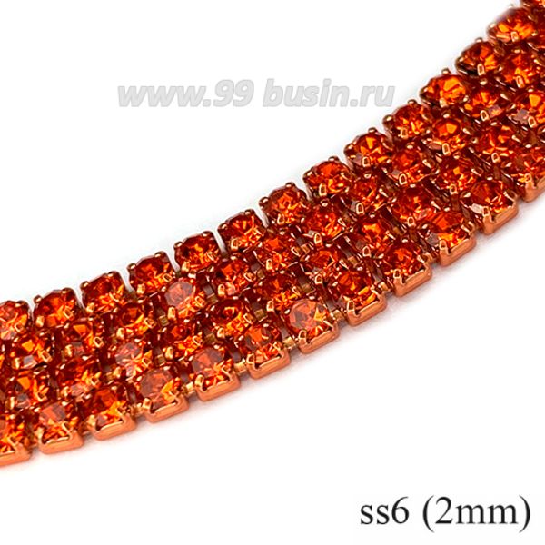 • Стразовая цепочка 2 мм (ss6) цвет танжерин (металл под цвет страз) Тайвань 0,5 метра