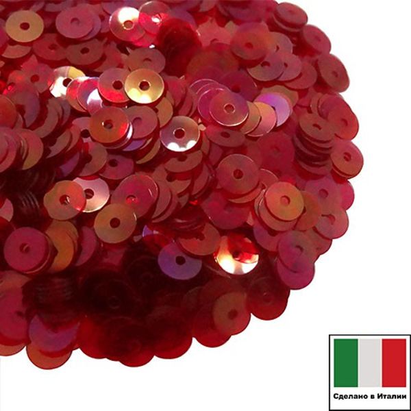 • Пайетки Италия плоские 4 мм Rosso trasparente Iridato I08 (Красный прозрачный радужный) 3 грамма