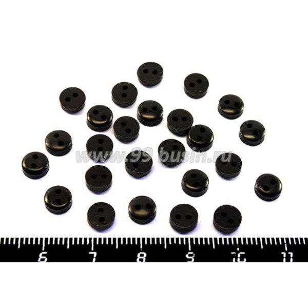 Пуговки маленькие пластмассовые 6*2,5 мм, черные, 25 шт/упак