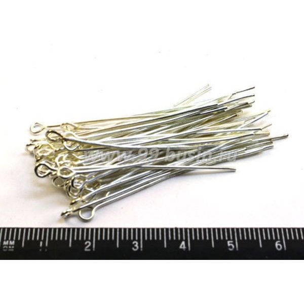 Пины с колечком 45*0,7 мм светлое серебро 40 штук/упаковка