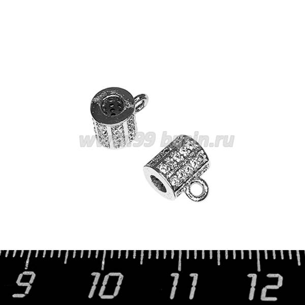 Бейл Премиум Милано с микроцирконами 9*7 мм, внутреннее отверстие 2,8 мм, родированный, 1 штука