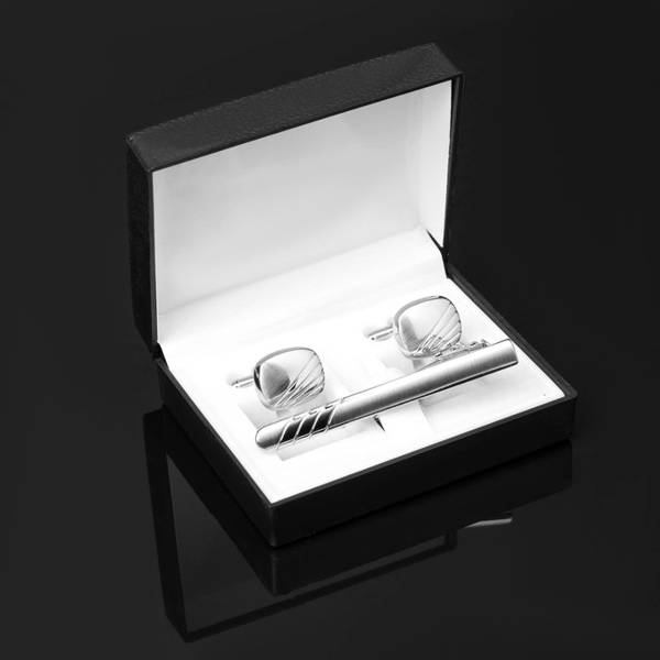 • Набор мужской "Запонки + Зажим для галстука" линии, цвет серебро